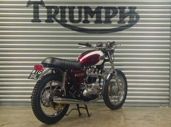 A very nice looking T140 Custom we are selling on behalf of the current owner. Fitted with many RJM custom parts along with very nice paint work to give it that 'One Off' look. It starts easily, runs, rides (see video) and all gears select. Matching numbers showing on the V5c but the engine number has been restamped and the engine/gearbox is a later 76/77 unit with left hand gear change. Also later swinging arm with disc rear brake. Comes with V5c registered historic. Delivery available throughout the UK and we can arrange shipping worldwide. Viewing by appointment only. Please call for more info.